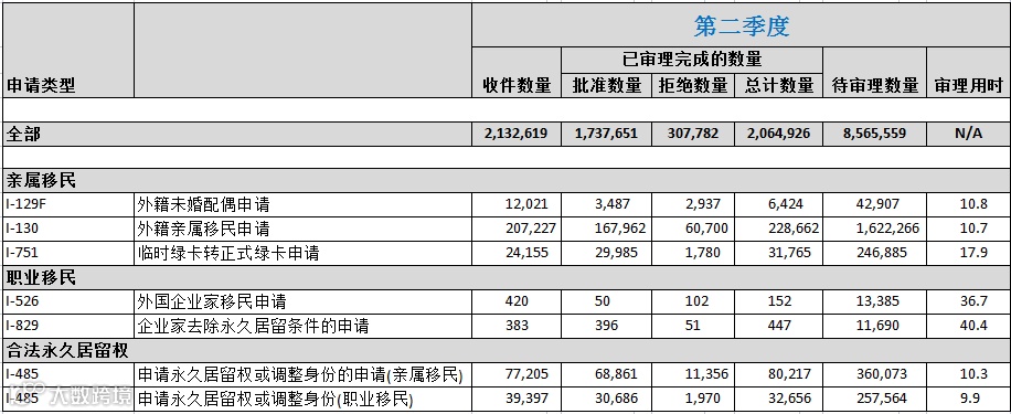 在2022财年Q2季度中,22万人获得美国合法永久居民身份,新移民9.6万,美国境内调整身份的12.4万人,同比2021财年第1季度增加了93%!
