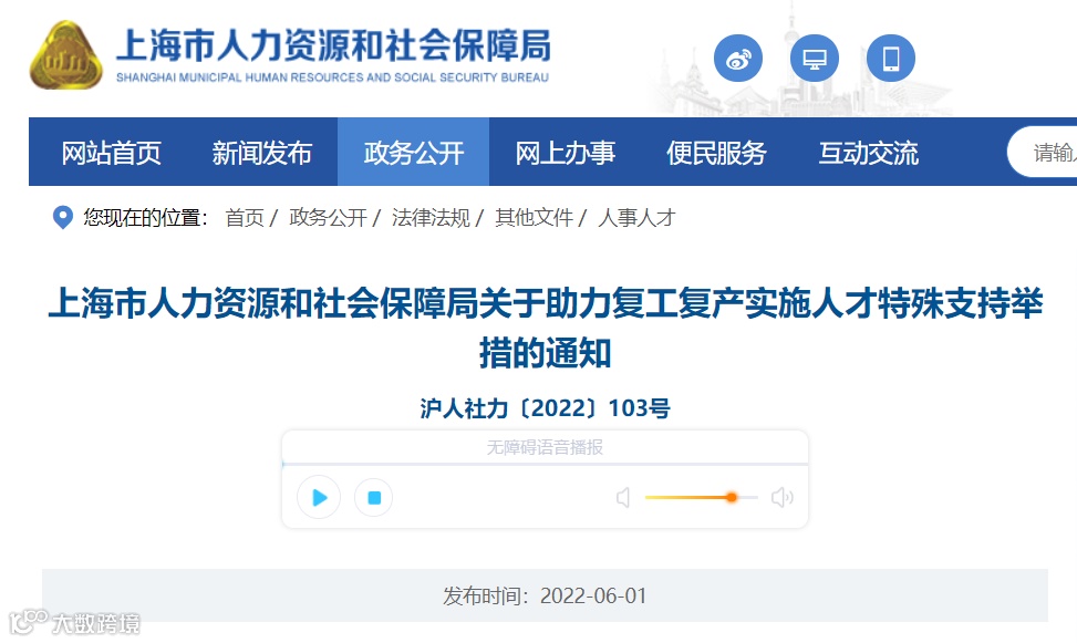 在上海经历这一波疫情之后,复工复产成为了上海人的首要任务。在这一关键时期, 6月1日,上海市人力资源和社会保障局发布了《关于助力复工复产实施人才特殊支持举措的通知》。其中明确表示:加大世界名校留学人才引进制度。