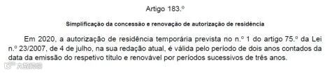 最近在葡萄牙今年 3 月 31 号通过的 2020 年国家预算法案(Lei n.º 2-2020)中,第 183 条对 2007年移民法(Lei n.º 23-2007)里关于居留卡的有效期进行了修改。