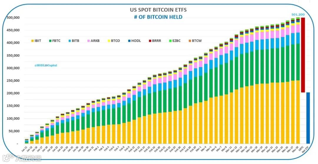 除灰度外的9只比特币ETF目前持有50万枚比特币