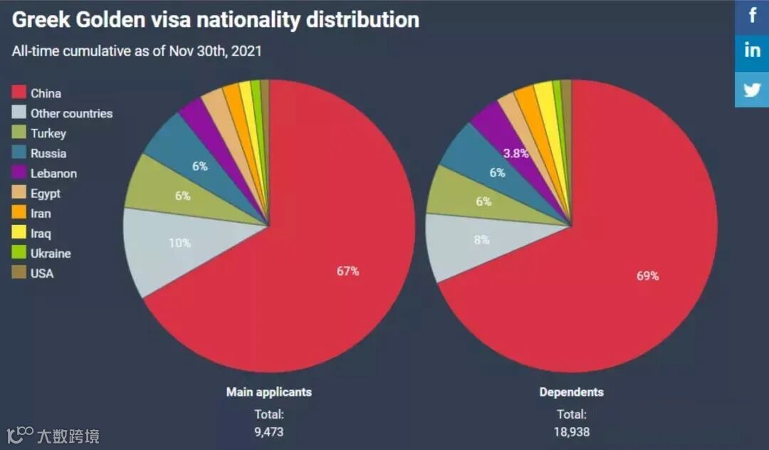 截至目前,总计9473名投资者,连同他们18,938名家属,获得了希腊黄金签证。