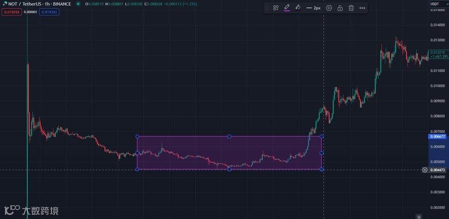 在大幅上涨之后,代币通常有很大可能会进行调整,特别是在像我们看到的 $NOT 这种炒作行情中。