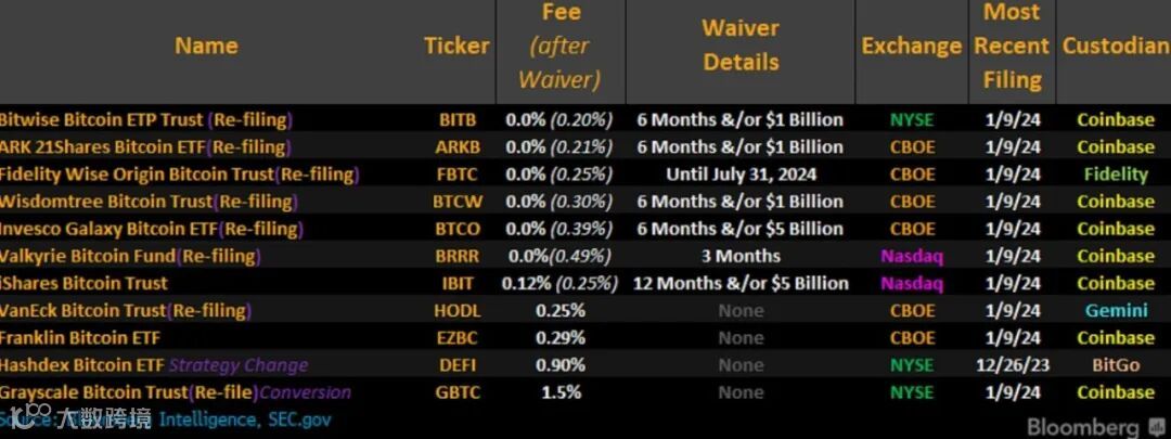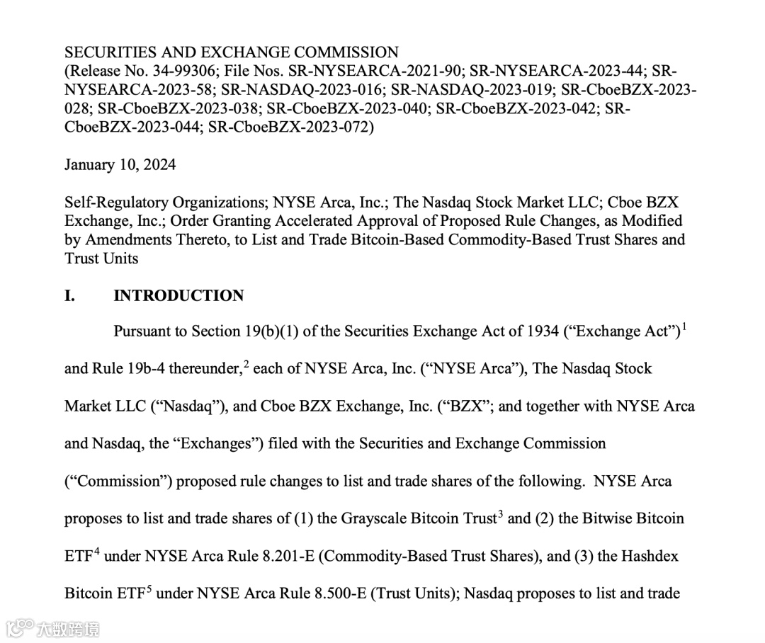 据悉美国SEC正式批准了Bitwise、灰度Grayscale、Hashdex、贝莱德(BlackRock)、Valkyrie、BZX、Invesco、VanEck、WisdomTree、富达(Fidelity)和富兰克林邓普顿(Franklin Templeton)旗下的所有11只比特币现货ETF。