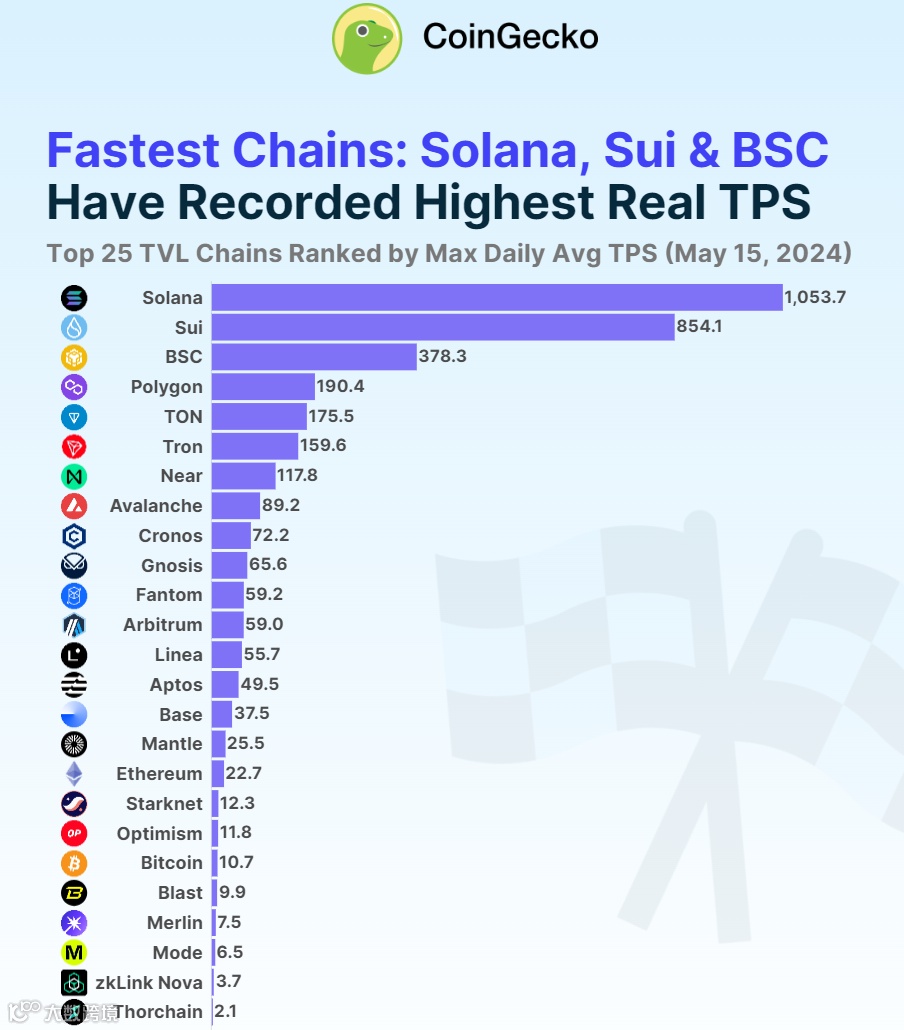 5月17日,据CoinGecko发布的最新报告,Solana已被证明是大型区块链中速度最快的,在Meme币热潮中,其实际日均交易量 (TPS) 于今年4月6日达到1,504笔历史新高。