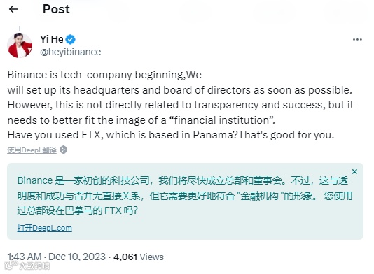 何一:危言耸听不会杀死币安,将尽快成立总部和董事会