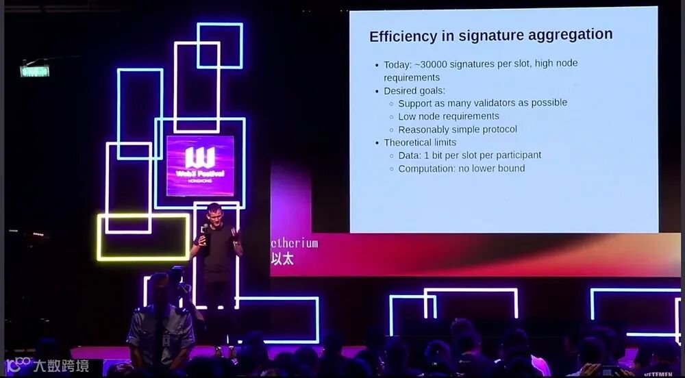 此外,在谈到签名聚合效率时,Vitalik Buterin 指出当前情况是每个时隙约有 30000 个签名,这需要高节点需求。
