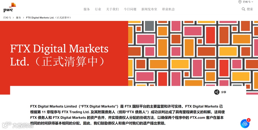 3月3日官方信息称,FTX Digital Markets Ltd(正式清算中)已通知客户和非客户债权人在 2024 年 5 月 15 日前提交电子索赔,符合条件的客户和非客户债权人可在网站查看 FTX 账户中的余额,并在 FTX Digital 清算中提交电子索赔。