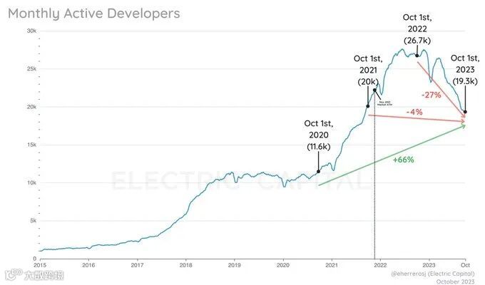 相比2022年同期,crypto MAD同比下跌了27%,但是值得庆幸的是,相对于两年前还是有66%的增长。