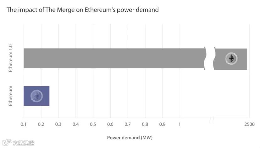 现如今以太坊最显著的改进就是能源消耗大幅降低,据剑桥替代金融中心的数据,以太坊网络的能源消耗与 PoW 运行时所需的电力(约 21 太瓦)相比下降了 99.9% 以上。