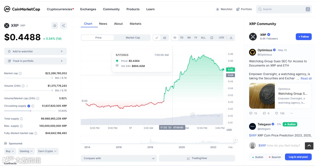 时至今日,法官Analisa Torres裁定SEC无法封存前高级职员William Hinman的相关文件,此消息一出,Ripple的代币XRP在一天之内上涨了5.34%。