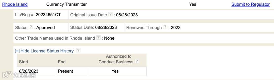 根据NMLS显示的数据,罗德岛州货币发送器许可证于 8 月 28 日获得批准(需要该许可证才能代表用户提供虚拟资产相关服务。),未来X可能会向全球百万用户引入加密货币得发送和接受功能。