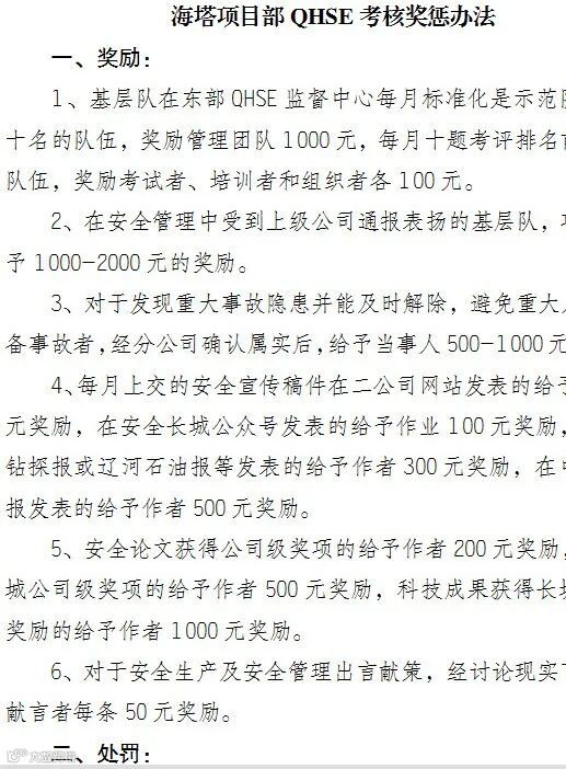 项目部进一步完善安全管理处罚规定,将生产安全责任分解到井队干部大班、班组及岗位,形成紧密的生产安全责任网络。