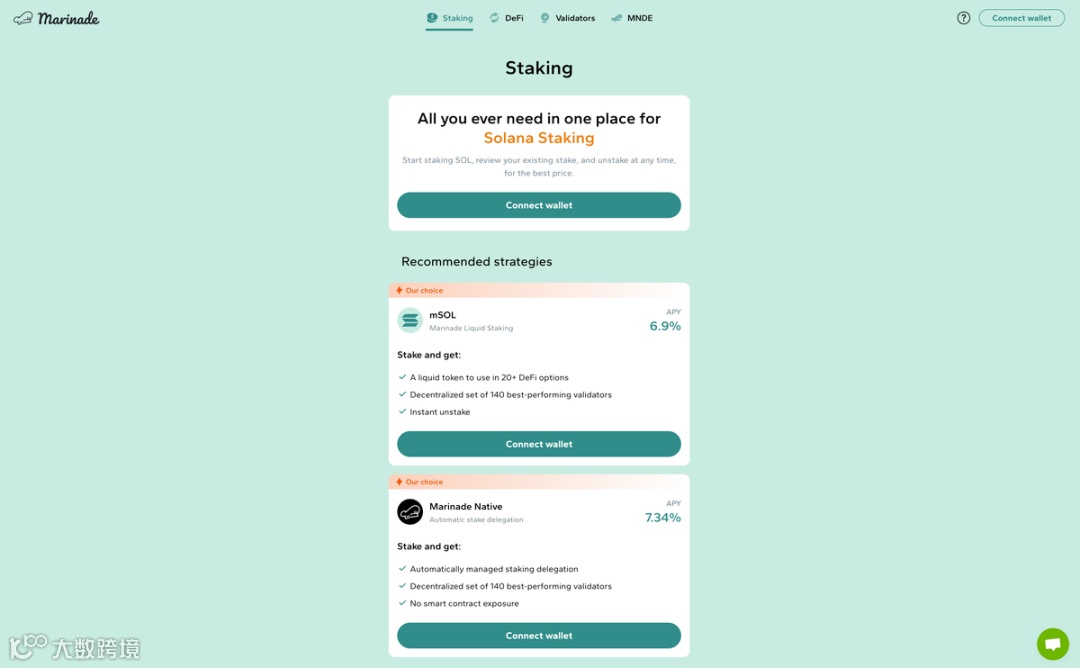 Marinade 是 Solana 上的原生非托管流动性质押协议,意思指在区块链上直接进行数字资产质押,用户无需信任第三方,可以自主管理资产,提供流动性支持,并参与DeFi交易获取收益。