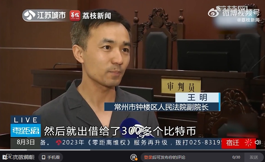 8月7日,荔枝新闻报道,近日江苏的徐某借给林某341个比特币,因对方未归还起诉至法院。