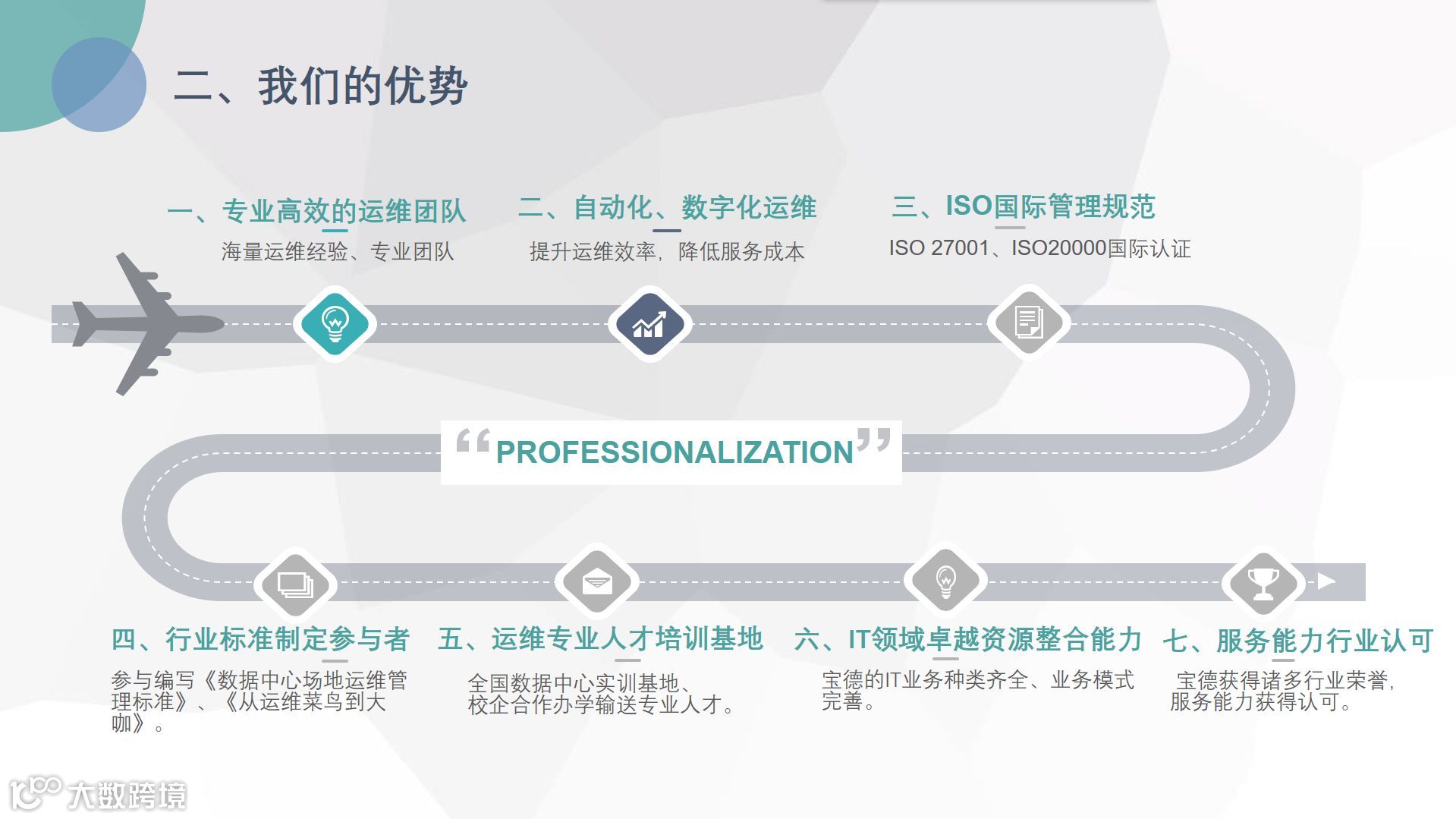 宝德DCOO是宝德的核心业务之一,是国内领先的数据中心基础设施综合维保服务提供商,宝德DCOO一直秉持“用心服务,放心托付”理念,基于宝德科技20年来在IT领域丰富的技术研发及生产制造经验的沉淀,为客户提供“一站式”高效的基础设施运维、IT设备运维、机房服务管理、机房设施维保、机房物业管理服务。宝德DCOO凭借优秀的运维服务能力已经在深圳、广州、克拉玛依、黔西南、大庆等地运维多个高等级数据中心。此次华为四川大数据中心项目中标是宝德DCOO业务的全新起点,对宝德意义深远。2018新的一年,宝德DCOO将顺应时代趋势,持续发力,以点带面,辐射全国,助力客户互利共赢,以创新驱动企业发展和行业发展。