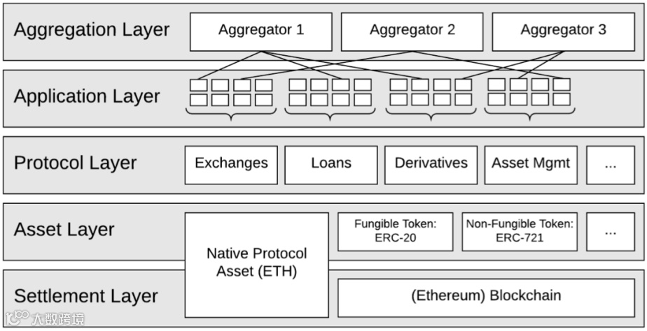 DeFi并不是某个单一的“赚钱项目”,而是一个自身架构十分明晰的金融体系。按层数分其实大致可以分为五层。