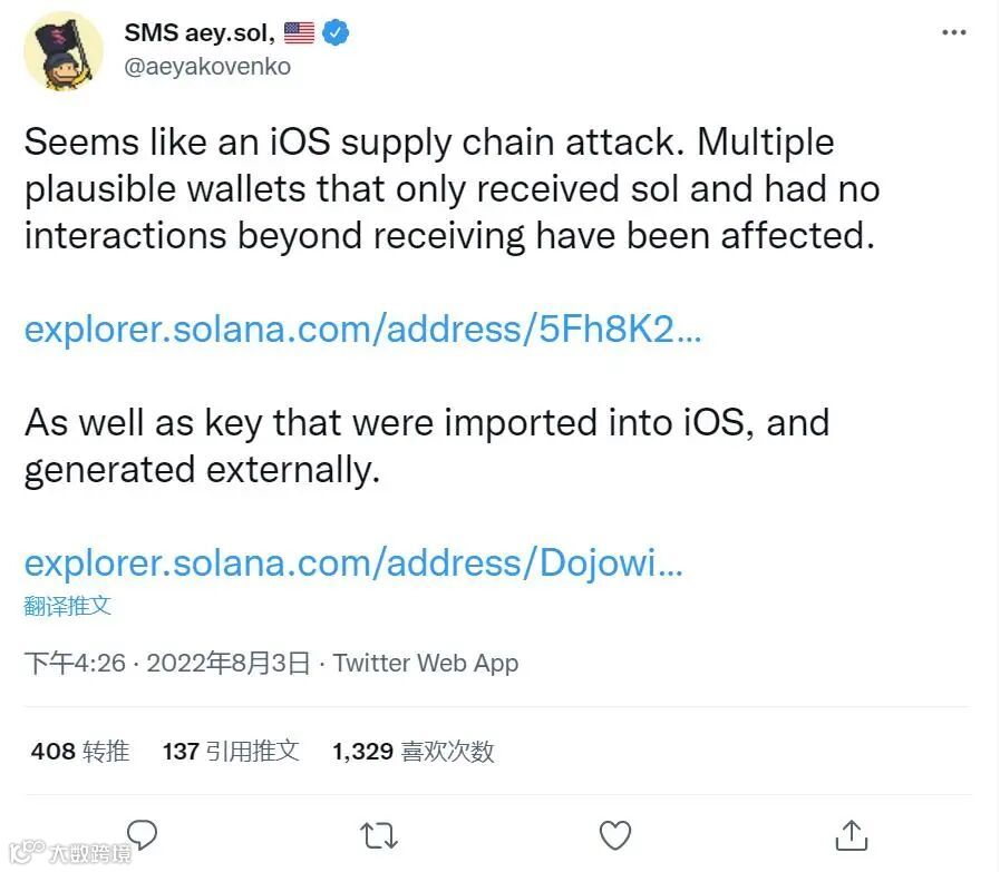 Solana Labs联合创始人听完赶紧打圆场,说应该只是iOS供应链受到攻击,只有这些用户放了私钥。
