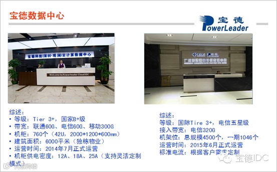 宝德科技云计算数据中心是华南地区领先的独立第三方数据中心运营企业,依托宝德集团的技术实力,凭借与全国运营商良好的战略合作关系,将竭诚为客户提供安全,可靠,贴心的数据中心服务。