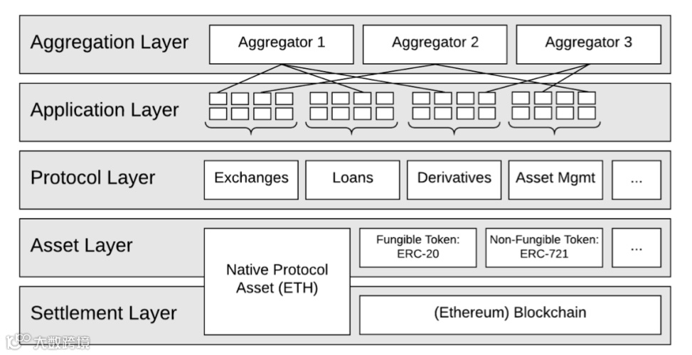 层次上,DeFi可分为五层,其中用户最常接触到各种去中心化应用,比如Uniswap和OpenSea便处于第四层。而第五层便是聚合层,即为方便用户使用,把第四层提供不同服务的应用集中到一个应用里。