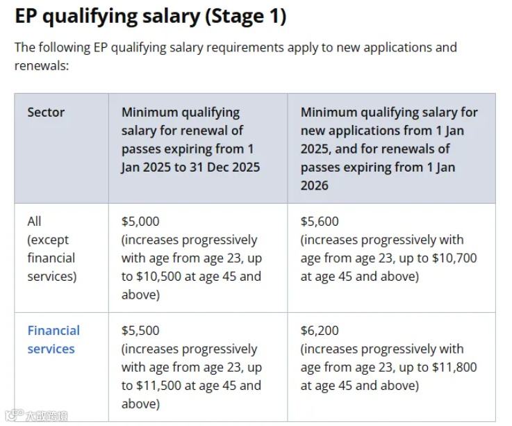 新加坡人力部(MOM)已正式宣布2026年EP政策重大调整,非金融行业最低月薪将从5,000新元提升至5,600新元,金融行业则从5,500新元跃升至6,200新元。
