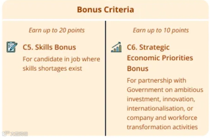紧缺职业加分:从事新加坡紧缺职业清单(SOL)上的岗位可额外加10或20分。