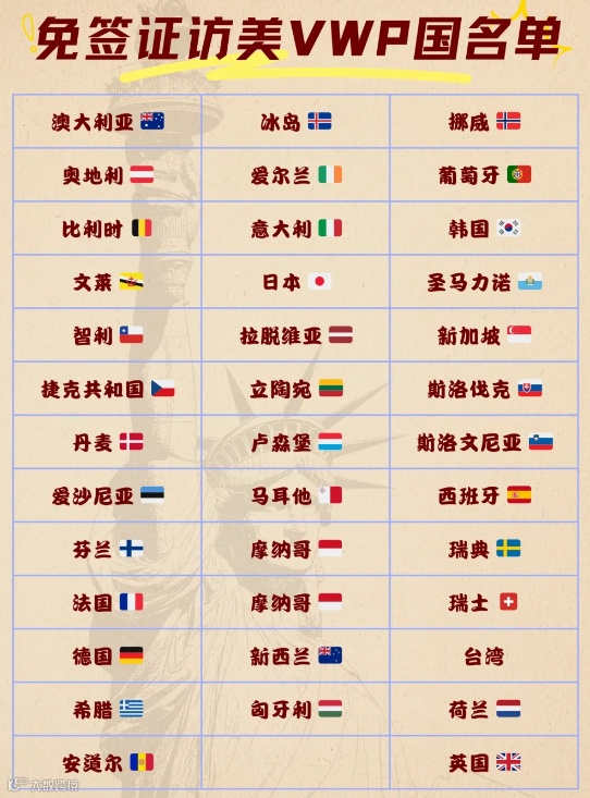 谁例外? 已经加入美国“免签计划”(VWP)的42个国家(主要是欧洲和部分亚洲发达国家)不受影响。