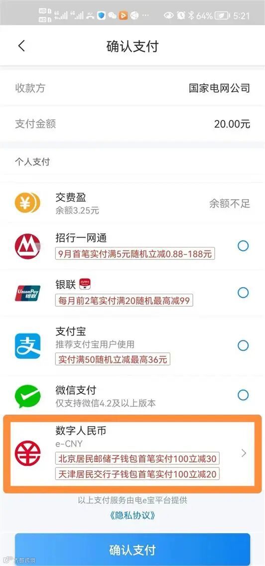 9月18日,移动支付网显示,杭州数字人民币交电费功能全域开通。国网杭州供电公司表示,用户通过手机上的小程序即可使用数字人民币钱包线上缴纳电费。