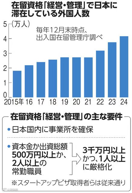 你还别说,这还真不是忽悠,日本政府确实推出了这么个吸引外国创业者的政策:只要拿出500万日元(大概25万人民币)启动资金,在日本开家公司,日本政府立马就能给你发一张“经营管理”签证。