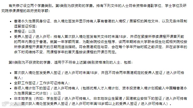 关键门槛: 从2028届(2028/29学年入学)开始,拿受养人签证的同学,必须在香港学习/居住满两年,才能申请“获资助学费”类别。