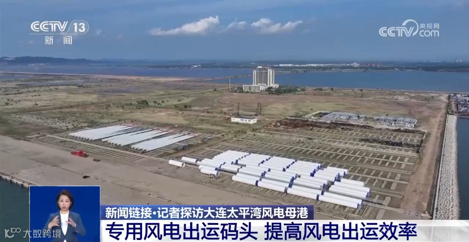 大连太平湾合作创新区管委会副主任 徐雪蛟:大连太平湾风电母港已经建成了两个专用的风电出运码头,能够停泊10万吨级的货轮。意味着一条船就可以运出五六台套风电整机装备,大大提高风电出运的效率,降低风电出运的成本。