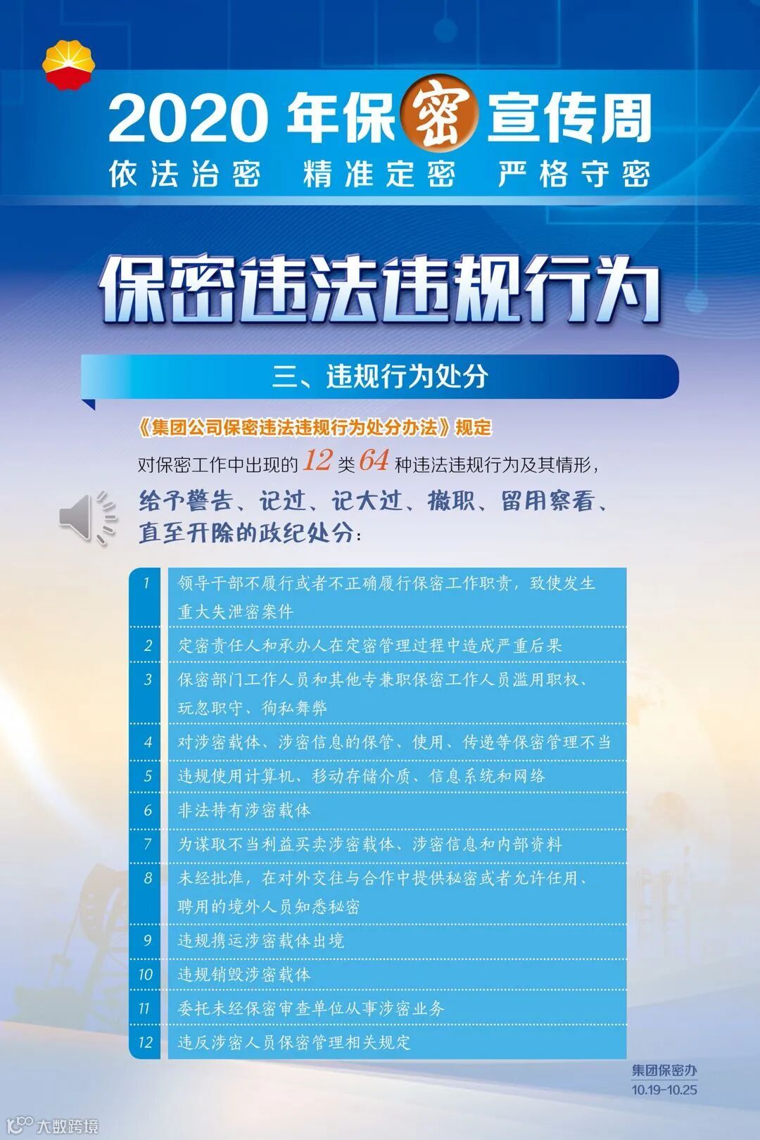 昨天,本公众号推出了公司保密宣传周活动的第四项内容:“如何保护秘密”。今天推出最后一项“对保密违纪违法违规行为如何处分”,敬请阅读。