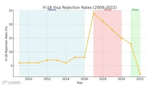 同时,在就业方面,他推出的“史上最严H1B新规”更是让无数留学生陷入困境。虽然这些新规最终被驳回,但特朗普在任期间对H1B申请者实施了更为严格的审核标准,导致拒签率大幅上升。