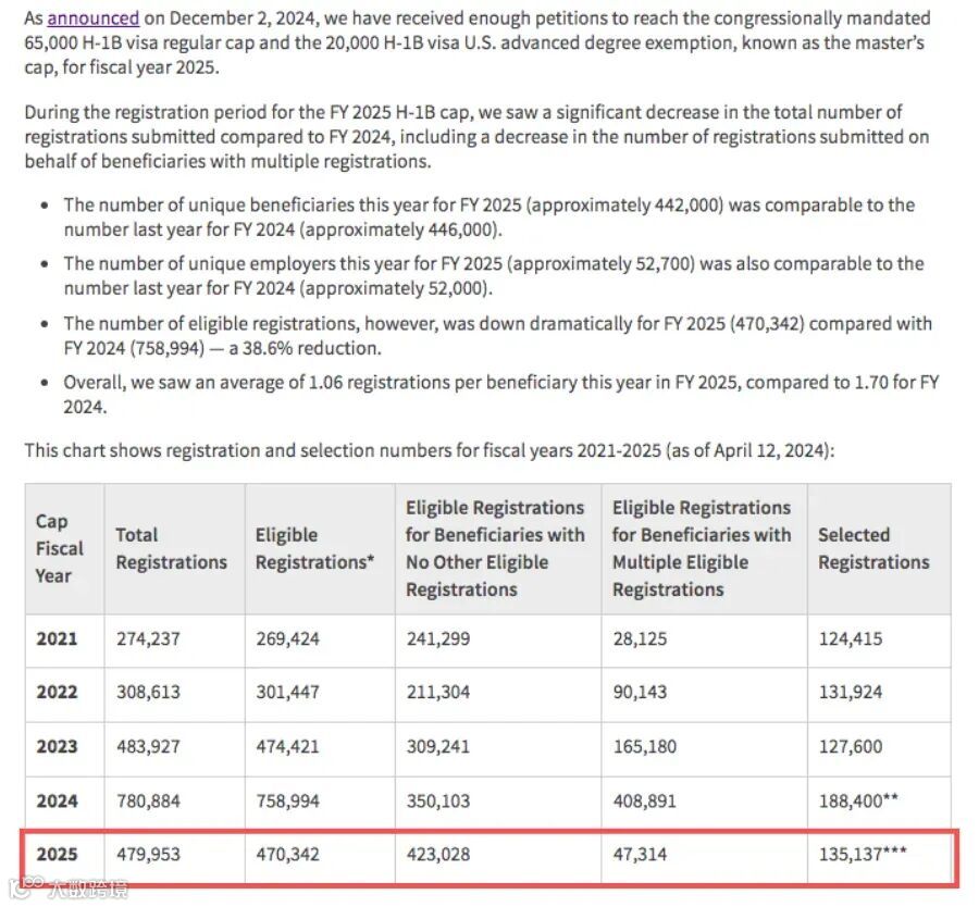 这一消息对于那些仍对三轮抽签抱有幻想的留学生而言,无疑是沉重的打击。根据移民局公布的数据,经过两轮抽签,2025财年H1B总中签人数为135,137人,整体中签率为28.73%。
