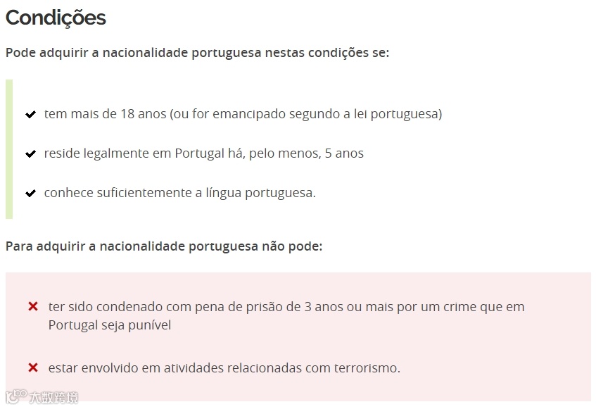 想要取得葡萄牙国籍,申请人需达成以下几项基本资格条件: