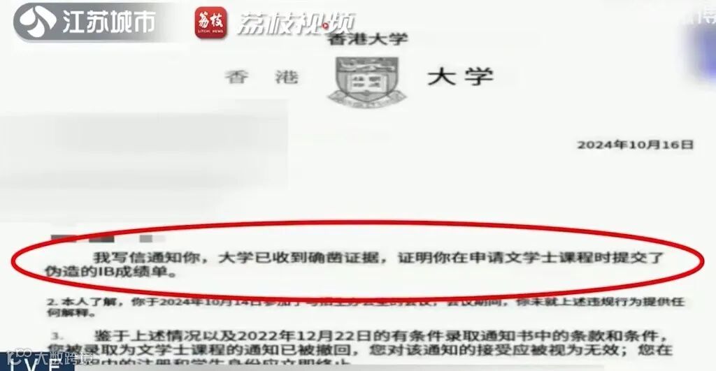 李女士愤怒不已,她认为中介机构在帮助女儿申请港大时,擅自伪造了美国高中的学历及IB成绩。