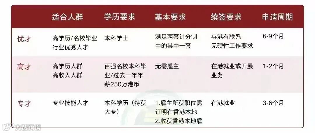 香港高才、优才、专才对比