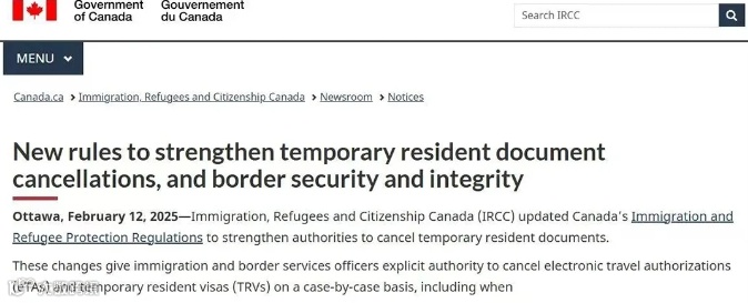 这一新政赋予了移民和边境官员更大的权限,可以直接取消电子旅行授权(eTA)、临时居民签证(TRV)、工签和学签,旨在加强加拿大临时居留计划的完整性,并提升边境与境内的安全管理。