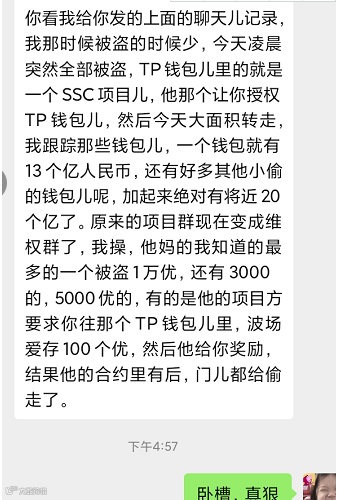一开始就承诺你,只要你存100个u就奖励你空投5个SSC,存的越多奖励越多,以这种奖励方式来获得你的信任,等你要使用TP钱包时就让你预授权,之后时机一成熟,就在你毫无防备下将你的资产全部转移。