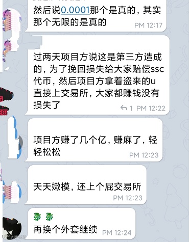目前还有很多散户小白深陷其中,因为盲目的相信项目方,盲目的认为区块链钱包就很安全,所以在操作的时候,就不加警惕,导致自己的所有资产被小偷偷走。也有人揭露了这个SSC项目整个骗局的流程: