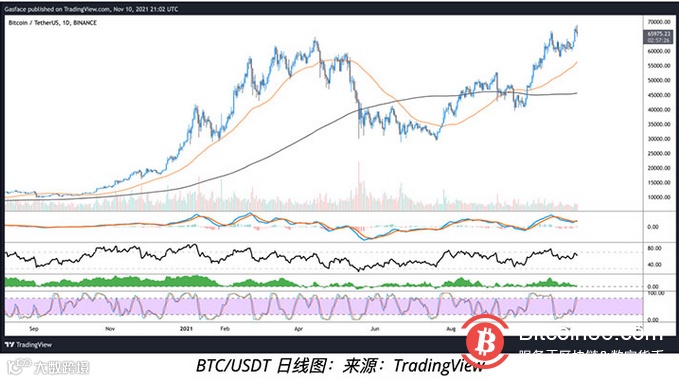 从技术分析的角度来看,在历史高点附近获利,以及需要重新测试较低的支持水平,是大多数加密货币的正常过程。事实上,快速浏览一下许多分析师和交易员在推特上的讨论就会发现,大多数人预计BTC在重新获得看涨势头和走高之前,会重新探底64,000美元及以下的较低支撑水平。