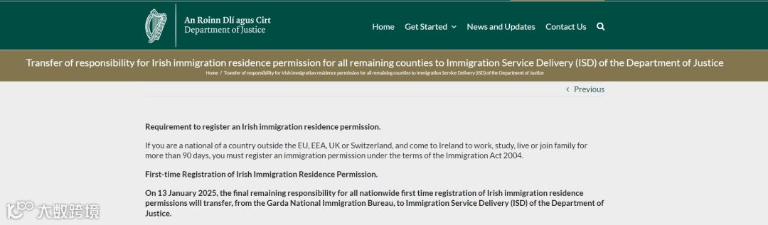 爱尔兰国家移民局将全面卸任所有初次登记的管理职责,转由司法部的移民服务执行单位(ISE)接手。