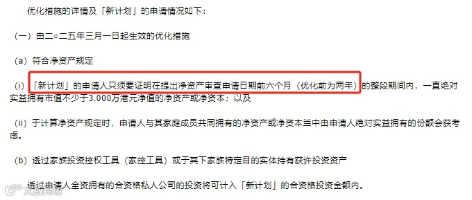 申请人只需证明在申请日期前六个月内,一直实益拥有市值不少于3000万港元的净资产(优化前为两年)。