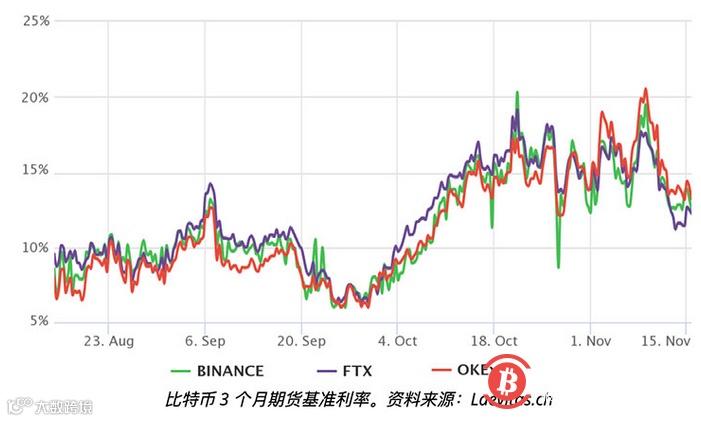 在健康的市场中,预计会有5%到15%的年化溢价,这是一种被称为contango的情况。这种价格差异是由卖家要求更多的资金来延迟结算时间造成的。