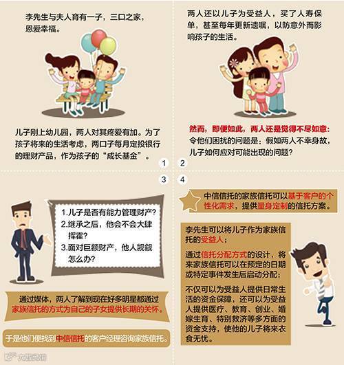 李先生的儿子刚上幼儿园,为了孩子将来的生活考虑,两口子每月定投银行的理财产品,作为孩子的"成长基金"。同时,两人了解到现在好多明星都流行通过家族信托的方式为子女提供长期的关怀,于是便找到小楹咨询家族信托……