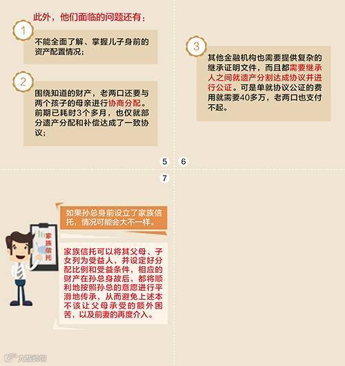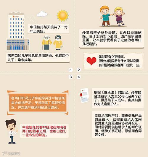 信托公司某天接待了一对年迈夫妇,老两口的儿子孙总前年刚离婚。前阵子孙总意外身故,又没有留下遗嘱。财产的继承问题,让本就承受着丧子之痛的老两口几近崩溃……