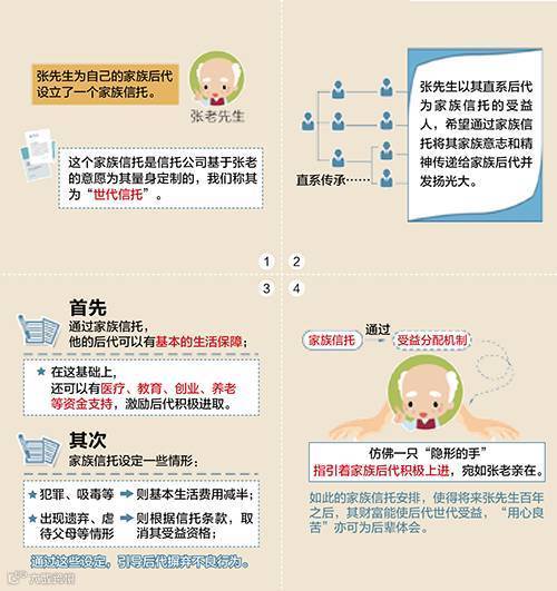 信托公司基于张老先生的意愿为其量身定制了一个"世代信托",以其直系后代为家族信托的受益人,那么通过这个家族信托,他的后代会得到哪些保障呢?