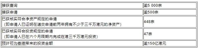4、已核实47宗符合投资规定的申请(即申请人在规定期限内完成了在港三千万港元的投资);