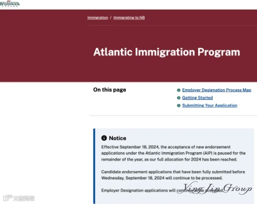 2024年9月18日起,新不伦瑞克省(NB省)因已用尽其2024年度AIP配额,宣布暂停接收新的AIP申请。然而,在此日期前已提交社区支持信的申请人,其申请仍会按照常规程序处理。