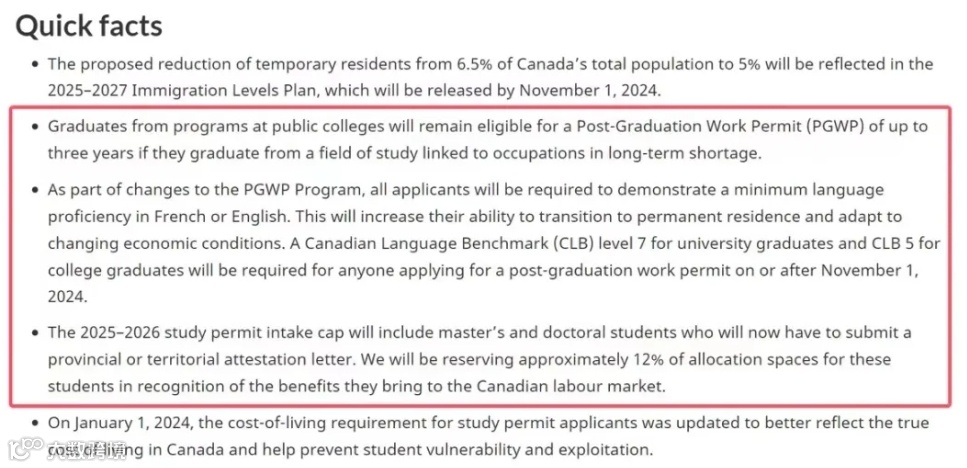 2、在今年秋季,将对毕业后工作许可(PGWP)计划作出调整,使其更符合移民目标以及劳动力市场的需求。从2024年11月起,PGWP申请人需展示出至少达到CLB 7(大学毕业生)或CLB 5(学院毕业生)的语言能力。
