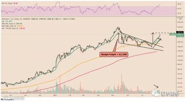 在过去的一年里,加密货币社区一直在热切期待、且颇有争议的以太坊EIP-1559于日前正式开始实施。它没有让许多币东失望,尽管EIP实施后立即出现了短暂下跌,但随后以太坊价格一路上涨:截止目前,ETH交易价格为3,110美元左右,仅在过去一周就上涨了20%,近3周以来涨幅则高达80%。